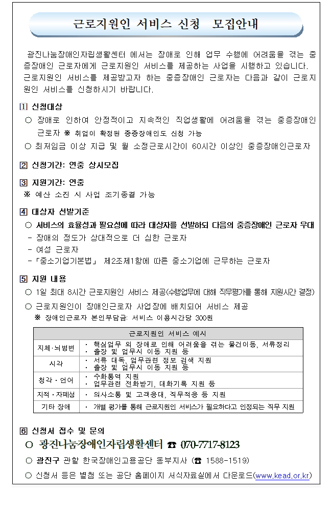 안녕하세요 광진나눔장애인자립생활센터 고대현 입니다.