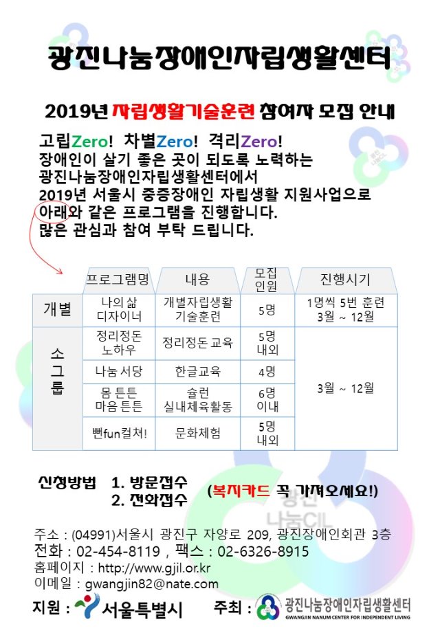 주소 : (04991)서울시 광진구 자양로 209, 광진장애인회관 3층