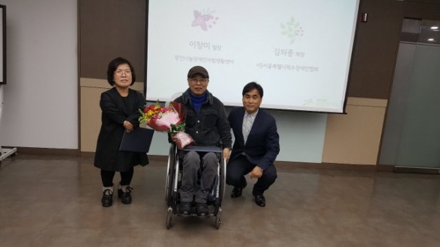 서울시중증장애인인턴제사업관리자 수기공모 우수상 수상 김주형 0 766 2017.12.04 09:32 센터 이창미팀장이 서울시인턴제사업 진행에 따른 관리자 수기 공모에서 우수상을 수상 헸다. 광진나눔센터는 앞으로도 중증장애인 인턴의 역량강화와 사회진출을 적극 지원한다.
