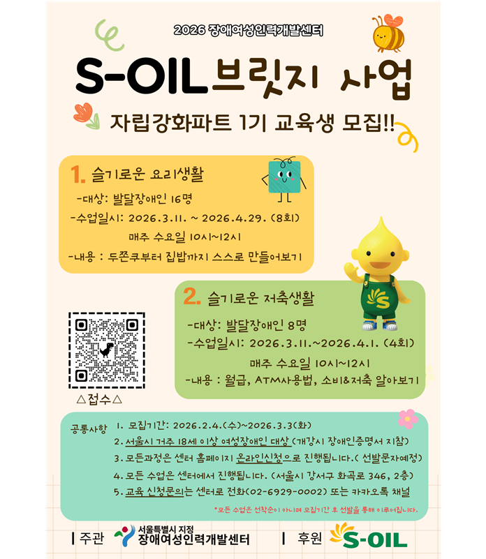 【에이블뉴스 이슬기 기자】장애여성인력개발센터가 2026년 “에쓰오일 브릿지 프로그램” 참여자를 오는 3월 3일까지 모집한다.