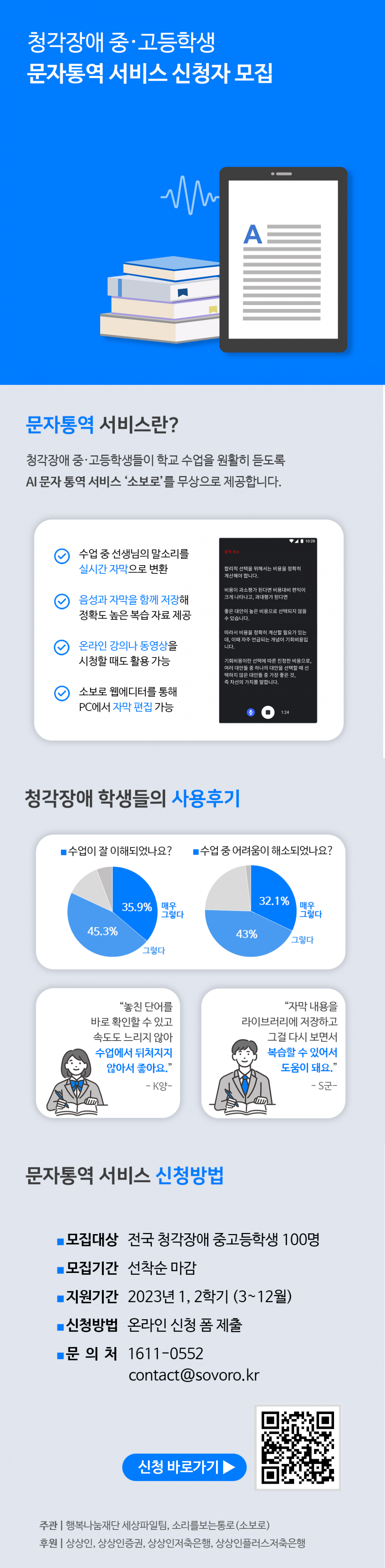 [SK행복나눔재단] 청각장애 중고등학생 무료 문자통역 서비스