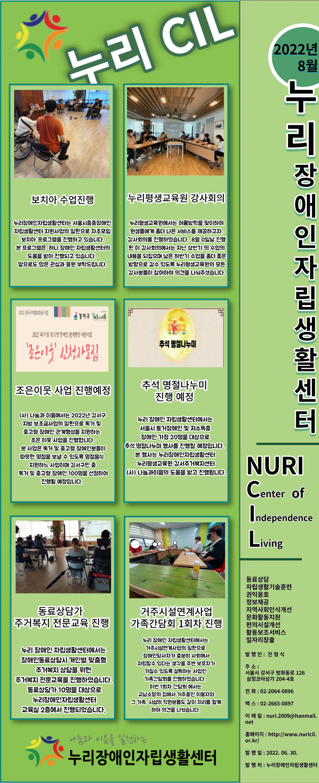 누리장애인자립생활센터 뉴스레터 8월호 입니다