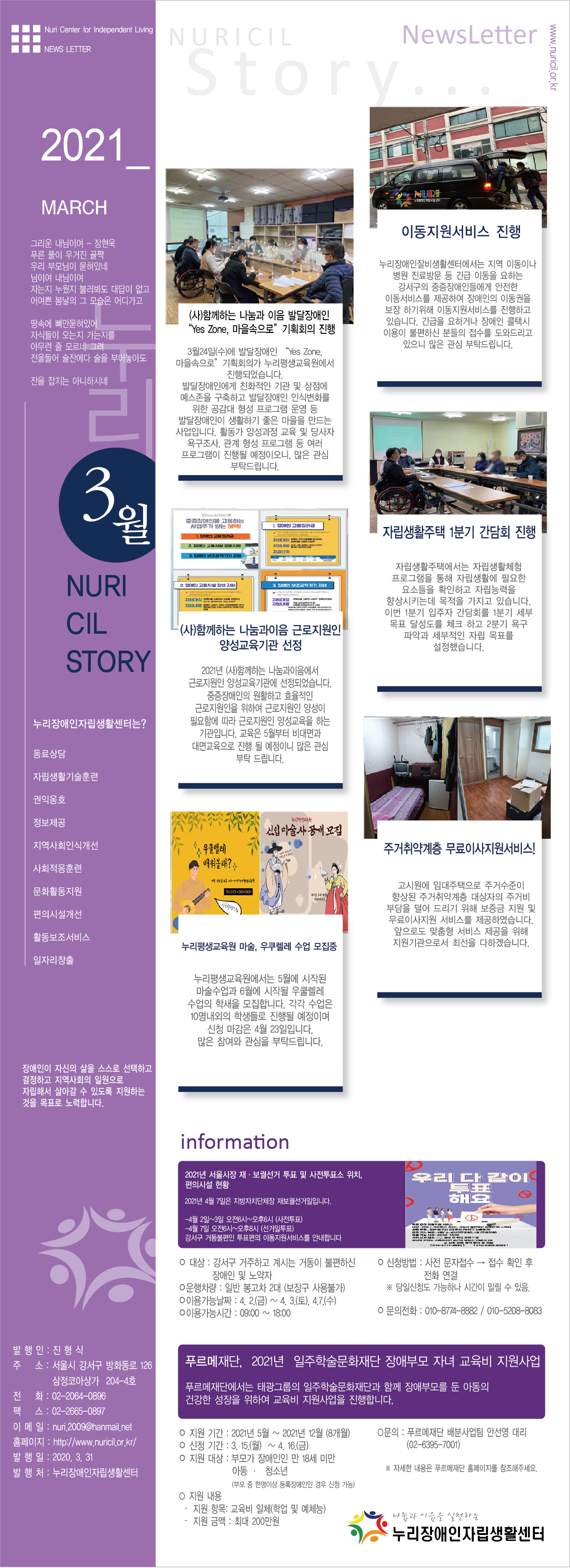 누리장애인자립생활센터 2021년 3월 뉴스레터입니다.
