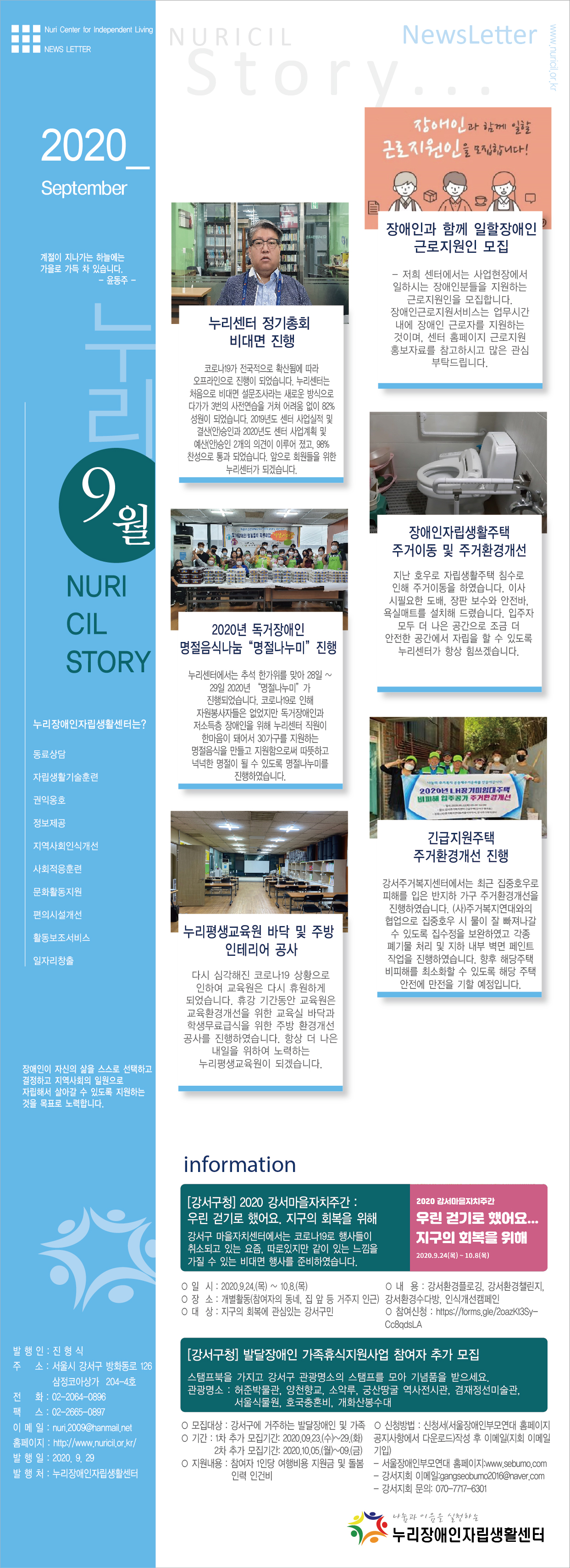 누리장애인자립생활센터 2020년 9월 뉴스레터입니다.