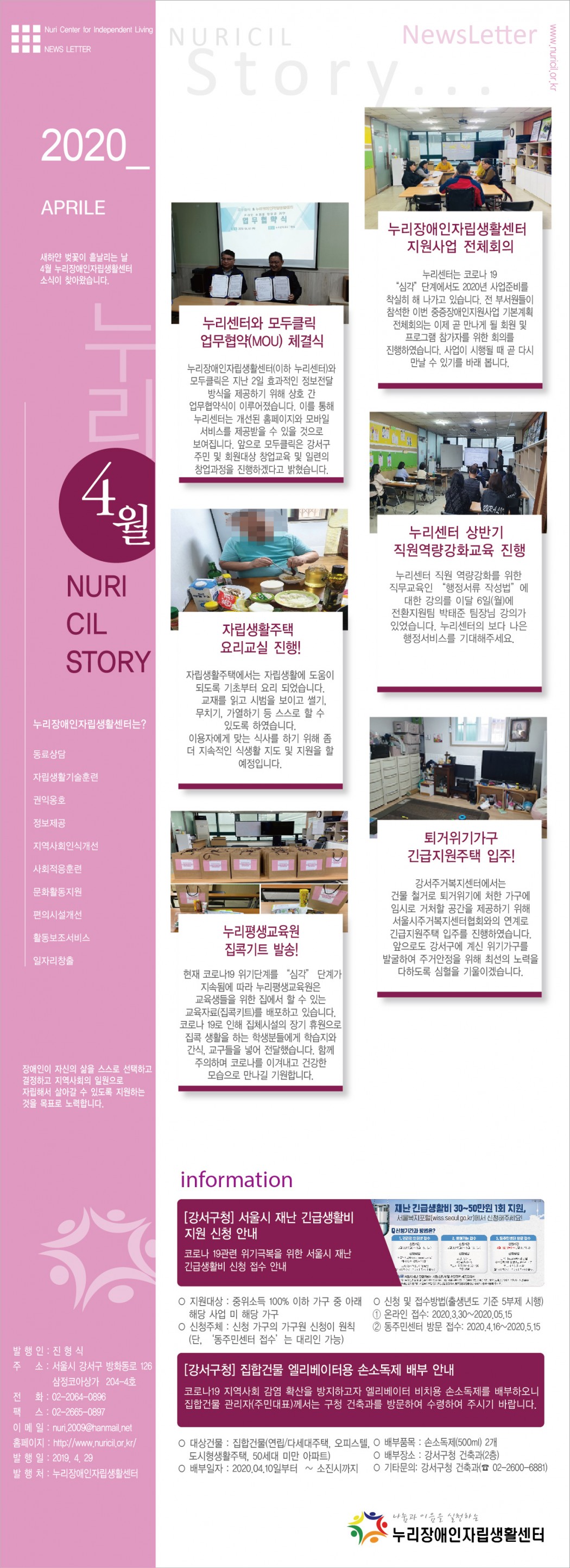 누리장애인자립생활센터 2020년 4월 뉴스레터입니다.