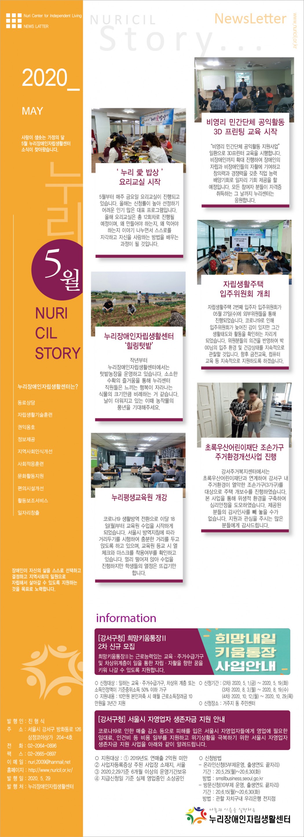 누리장애인자립생활센터 2020년 5월 뉴스레터입니다