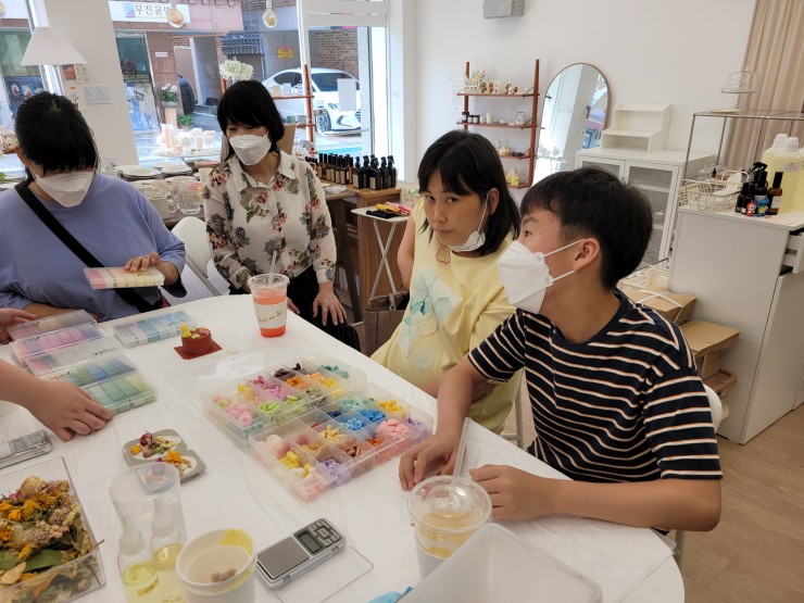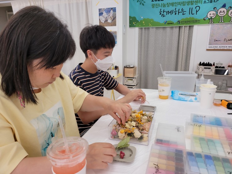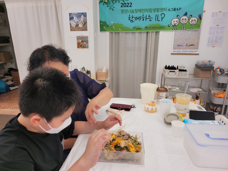 소그룹ILP-'함께하는 ILP'향초클래스 1회차 진행 관리자 0 417 2022.08.01 13:16 2022년 7월26일 소그룹ILP-'함께하는 ILP'향초클래스 1회차를 진행하였습니다. 케이크캔들 및 드라이플라워타블렛을 만들어 보았습니다. 이용자들 모두 프로그램에 적극적으로 참여하는 모습이 인상깊네요! 저희 광진나눔장애인자립생활센터에서는 더욱더 다양한 프로그램이 있으니 많은 관심과 참여 부탁드립니다. 감사합니다.