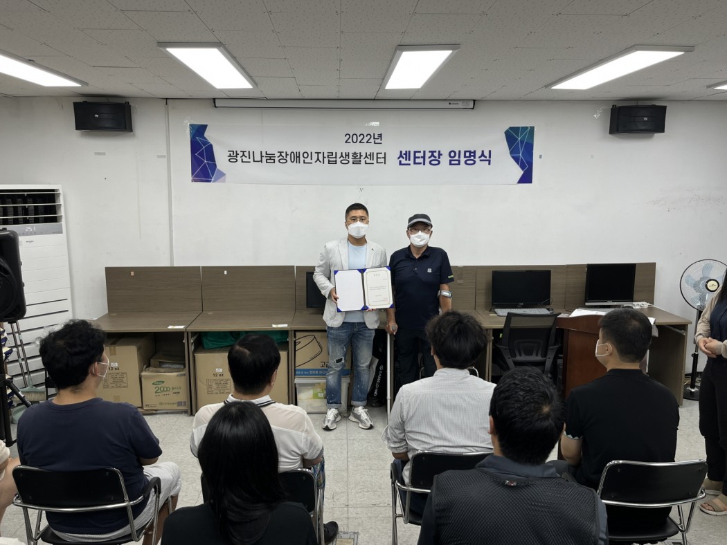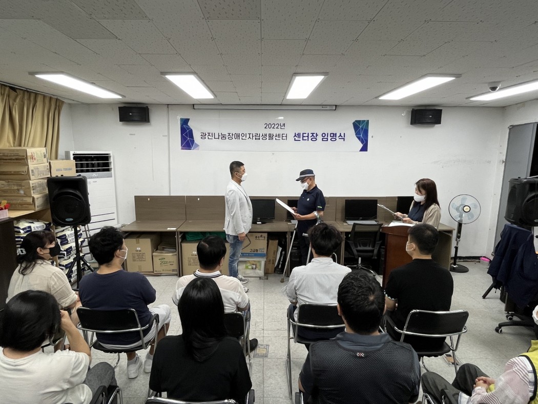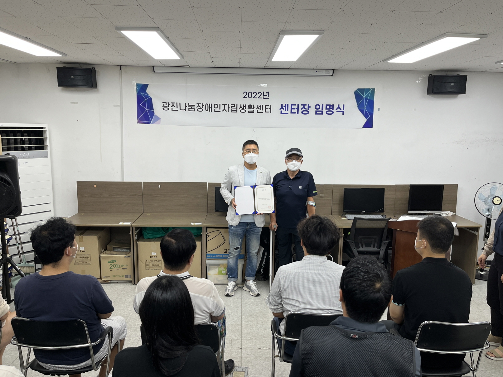2022년 광진나눔장애인자립생활센터 센터장 임명식 관리자 0 437 2022.08.09 16:22 8월8일(월) 광진나눔장애인자립생활센터에서 '2022년 광진나눔장애인자립생활센터 센터장 임명식'을 진행하였습니다. 더욱더 발전하는 광진나눔장애인자립생활센터가 되겠습니다. 감사합니다.