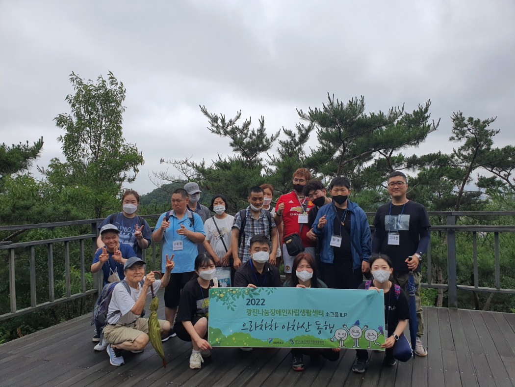 2022년 소그룹ILP의 일환으로 6월29일(10:00~13:00) 광진나눔장애인자립생활센터 전 직원과 이용자 모두 같이 아차산 동행을 다녀왔습니다.