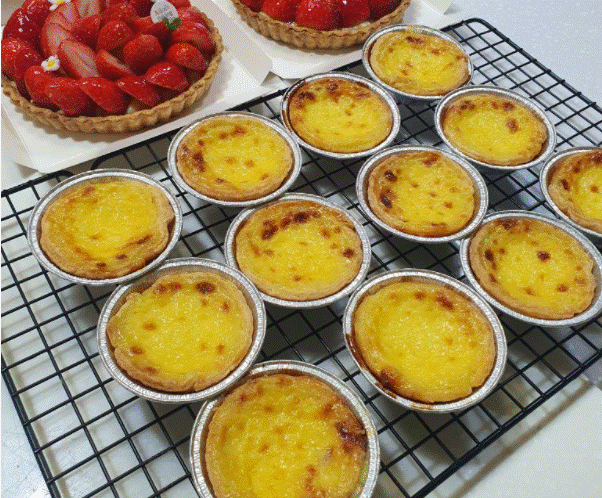 순차적으로 '스콘', '블루베리머핀', '모카쉬폰', '딸기케이크', '에그타르트', '당근케이크'를 만들어 보았어요.