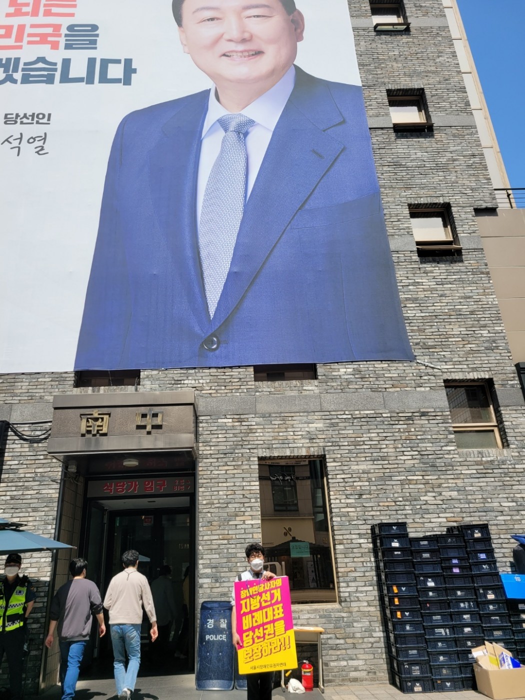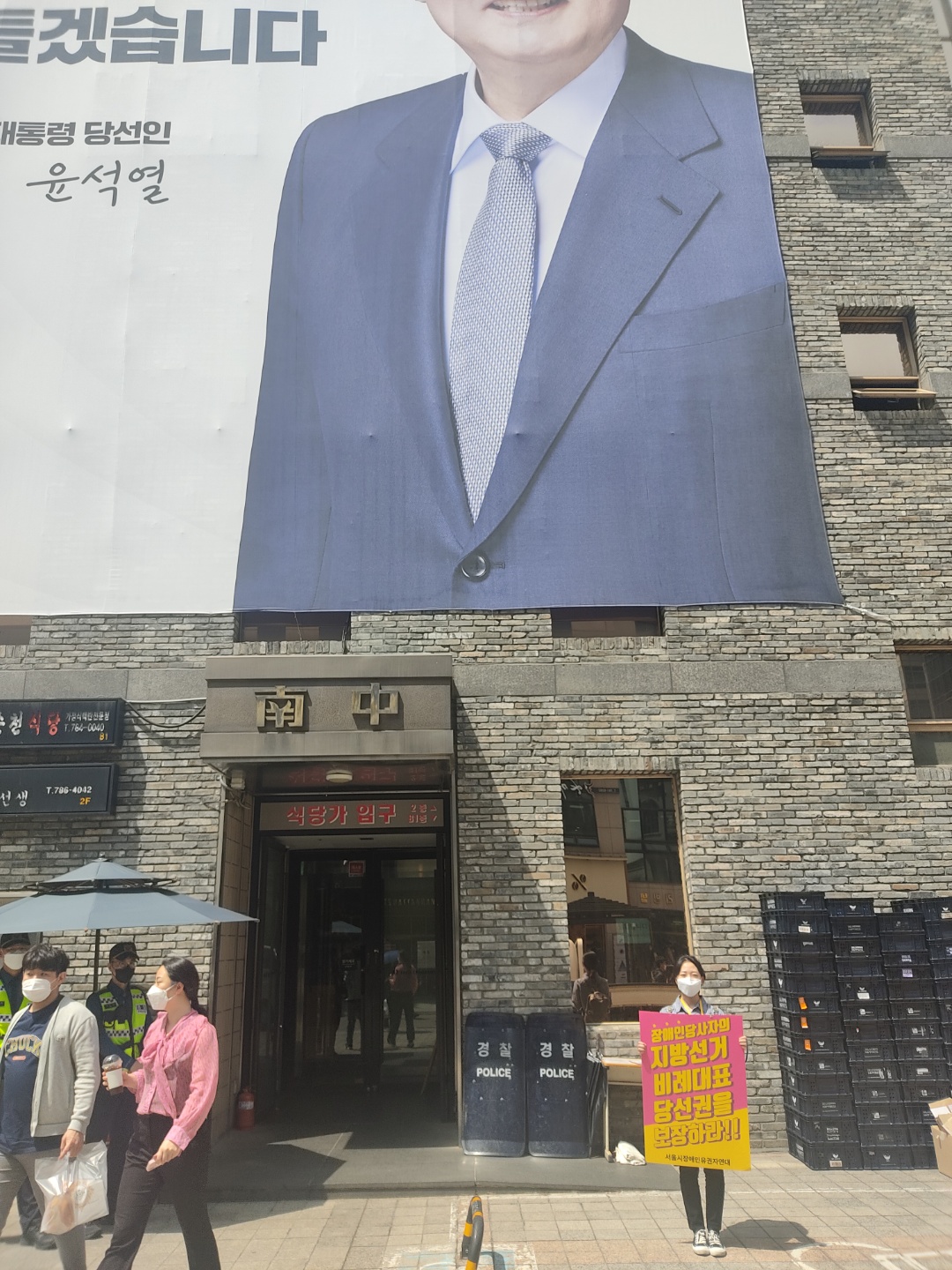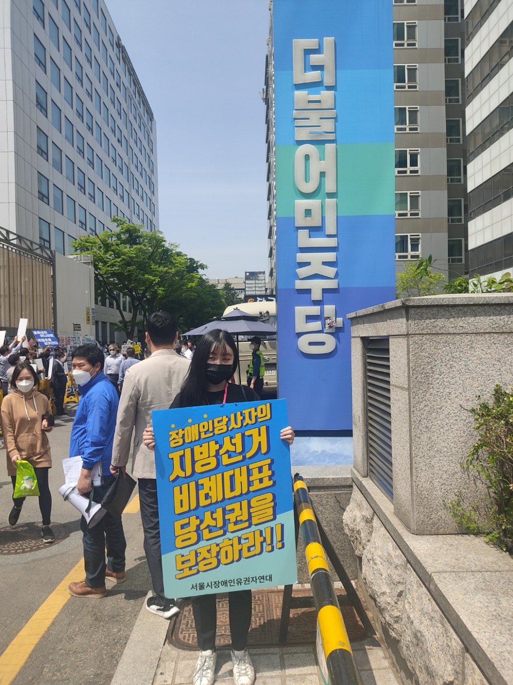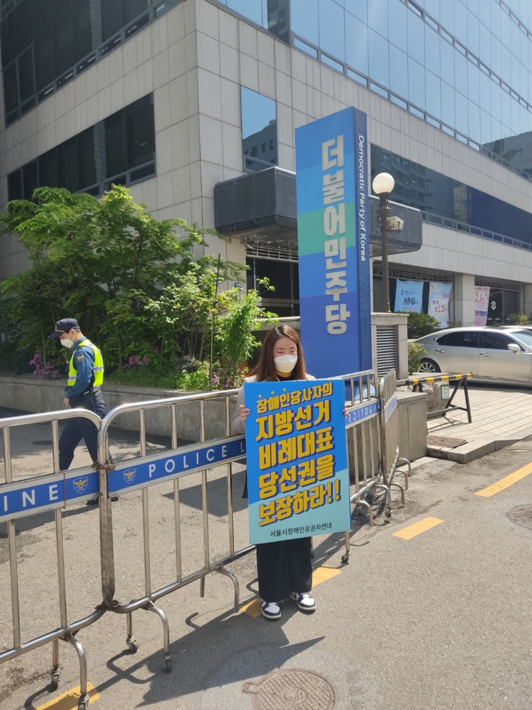 전국장애인유권연대 『장애인당사자의 지방선거 비례대표 당선권을 보장하라!!』 1인 시위 관리자 0 405 2022.04.28 20:35 4월18일에 전국장애인유권연대 『장애인당사자의 지방선거 비례대표 당선권을 보장하라!!』 1인 시위를 더불어민주당, 국민의 힘 각 당사앞에서 진행하였습니다 장애계는 2000년부터 지속하여 장애계의 필요현안을 마련하고, 장애계의 정치참여를 통한 해결책을 정치권에 요구하였습니다. 이러한 흐름에 맞추어 장애인당사자의 정치참여 기회를 확보할 수 있는 방안으로, 각 정당의 비례대표에 당사자의 적접적인 소통창구를 확보하길 바라고 있습니다. 앞으로도 저희 광진나눔장애인자립생활센터도 장애인들의 자립을 위해 열심히 하겠습니다.