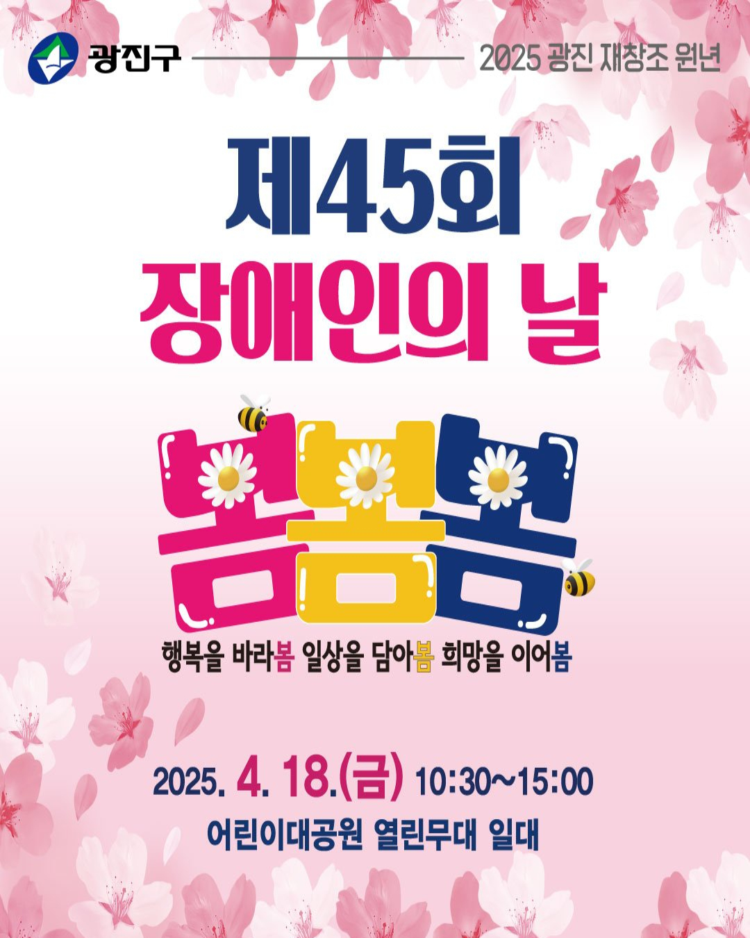2025 장애인의 날 행사 최고관리자 0 380 2025.04.22 13:13 2025 4월 18일(금) 장애인의 날 행사 '봄봄봄'를어린이대공원에서 진행하였습니다. 수상하신 선생님 그리고 부스운영진 선생님들 모두모두 고생하셨습니다. 장애인식개선 프로그램으로 낱말퀴즈 진행하였고 솜사탕과 애코백 증정하였습니다. 고생하셨습니다.