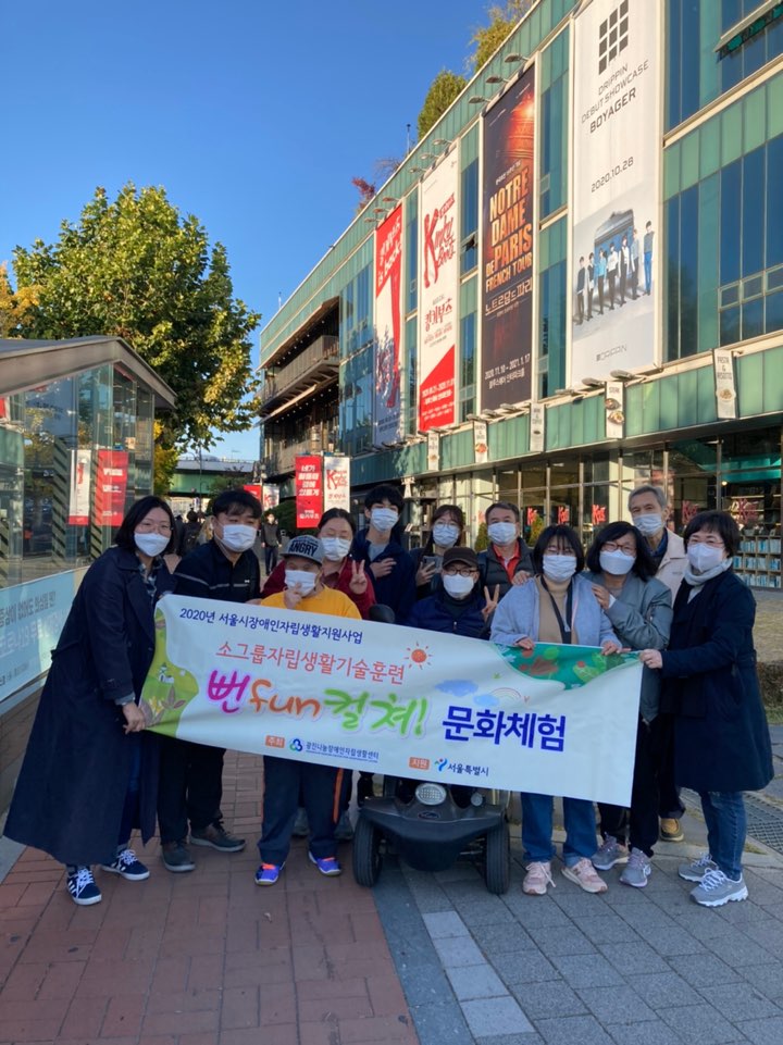 10/28 소그룹자립생활기술훈련 문화체험『뻔fun컬쳐!』- 뮤지컬 킹키부츠 관람 관리자 0 491 2020.10.30 15:56 <소그룹자립생활기술훈련 문화체험『뻔fun컬쳐!』- 뮤지컬 킹키부츠 관람> 2020년 10월 28일 소그룹자립생활기술훈련 문화체험『뻔fun컬쳐!』의 일환으로 뮤지컬 킹키부츠 관람하였습니다. 관람하신 이용자 분들 모두 입을 모아 너무나도 즐거운 시간이었다고 하네요!!