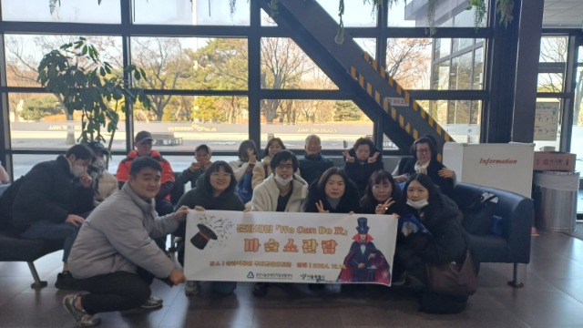 문화체험 [We Can Do It]_ 마술쇼 관람 관리자 0 589 2025.01.31 10:53 문화체험의 일환으로 마술쇼 관람을 보고 왔습니다. 이용자분들의 사진을 공개합니다.이용자의 보호자와 광진나눔센터의 직원이 함께 동행했습니다.마술쇼관람 이후 만족도 조사 결과, 이용자분들 모두 100% 긍정적인 평가를 보여주셨습니다. 또한, 다음 활동에 대한 긍정적인 기대감을 드러냈습니다.
