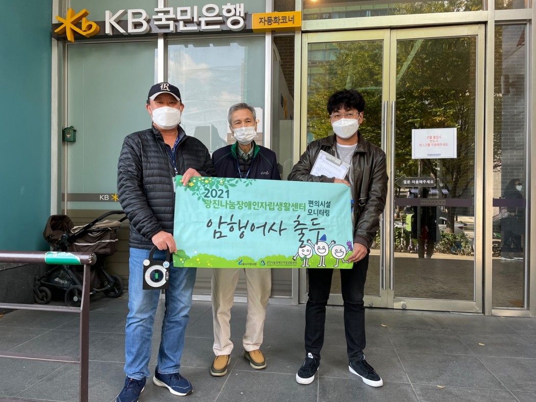 2021년 편의시설 모니터링 '암행어사 출두요' 활동가 모니터링 조사 관리자 0 573 2021.10.04 16:06 광진구 장애인의 은행 업무의 접근성 확보를 위해 은행을 대상으로 편의시설을 모니터링하였습니다.